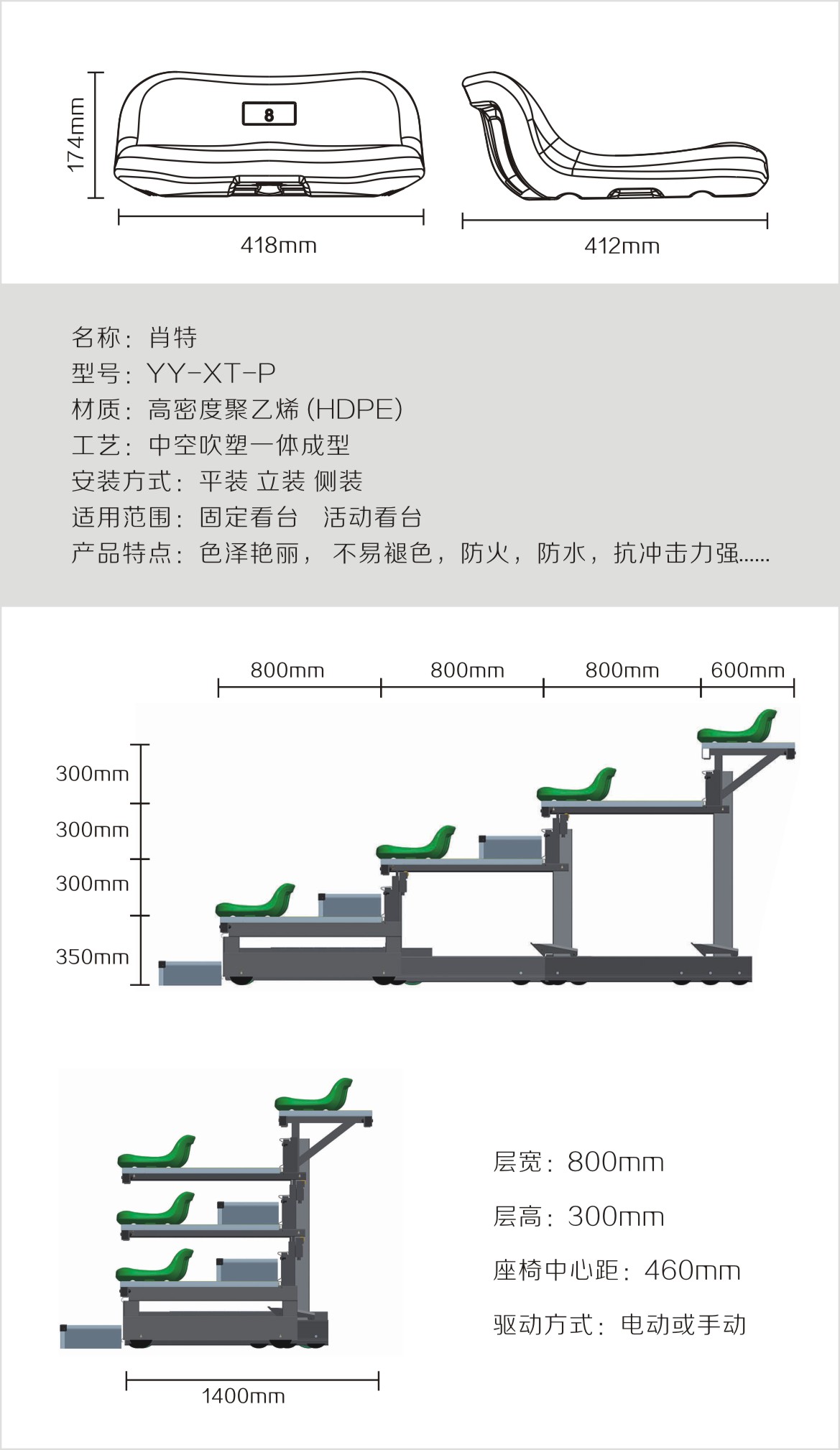 在寬闊的戶外體育場(chǎng),經(jīng)常舉行活動(dòng)的室內(nèi)體育館和演講廳,看臺(tái)和座椅是不能少的,由于這些場(chǎng)所舉行活動(dòng)比較頻繁,所以為保證說(shuō)動(dòng)可以迅速或如期舉行,采用固定看臺(tái)是最合適的;固定看臺(tái)穩(wěn)定,時(shí)時(shí)刻刻為每次將要舉行的活動(dòng)待命著,保證參加活動(dòng)的人員可以迅速入席。